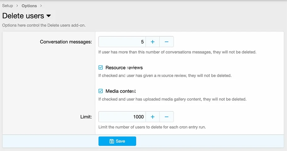 - Delete users who never made a post after 365 days and other conditions set in the options page.