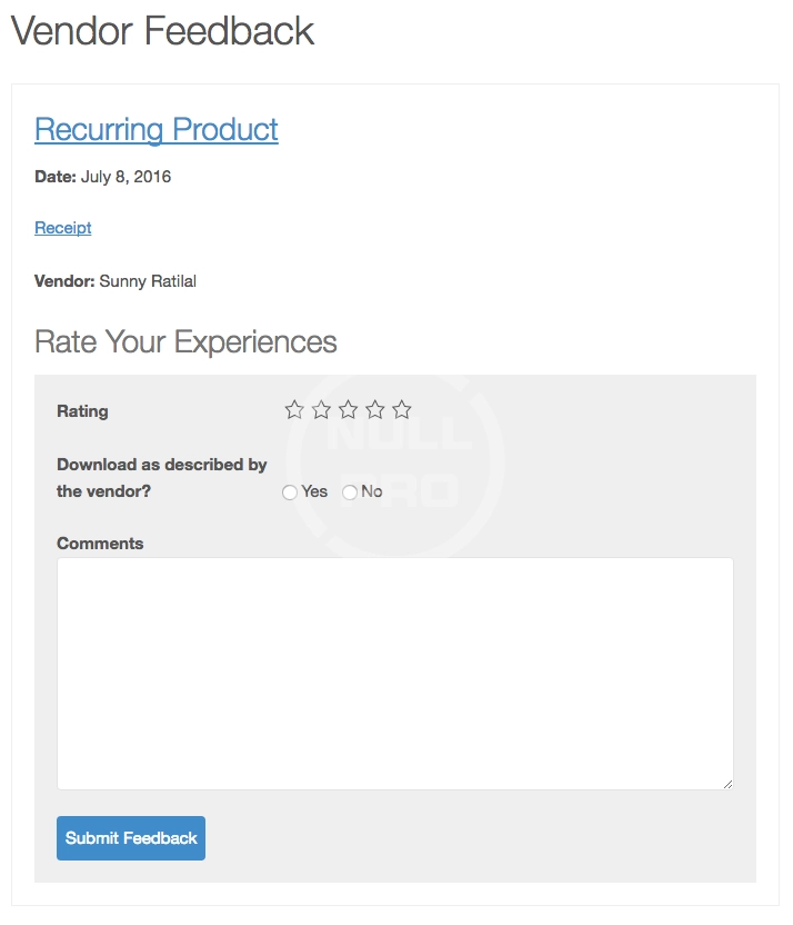 After making a purchase, if any of the products in that purchase were created by a FES vendor, customers can leave feedback for them. This allows store administrators and vendors to easily see what they’ve done well and what could be better.